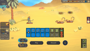 Aliosso is a turn-based roguelike all about combining tiles and cards to win battles and survive a perilous journey across the desert of Samsara.